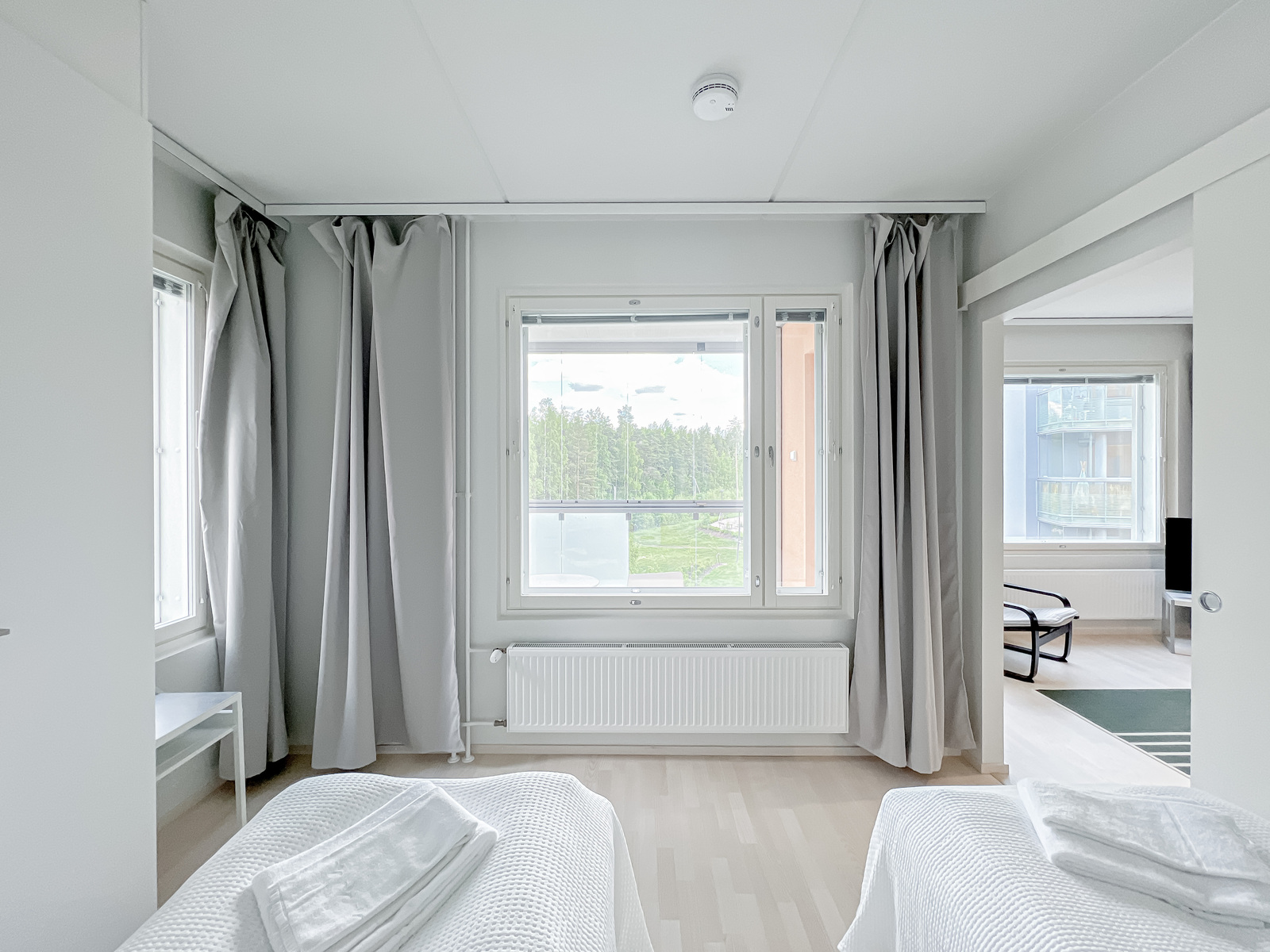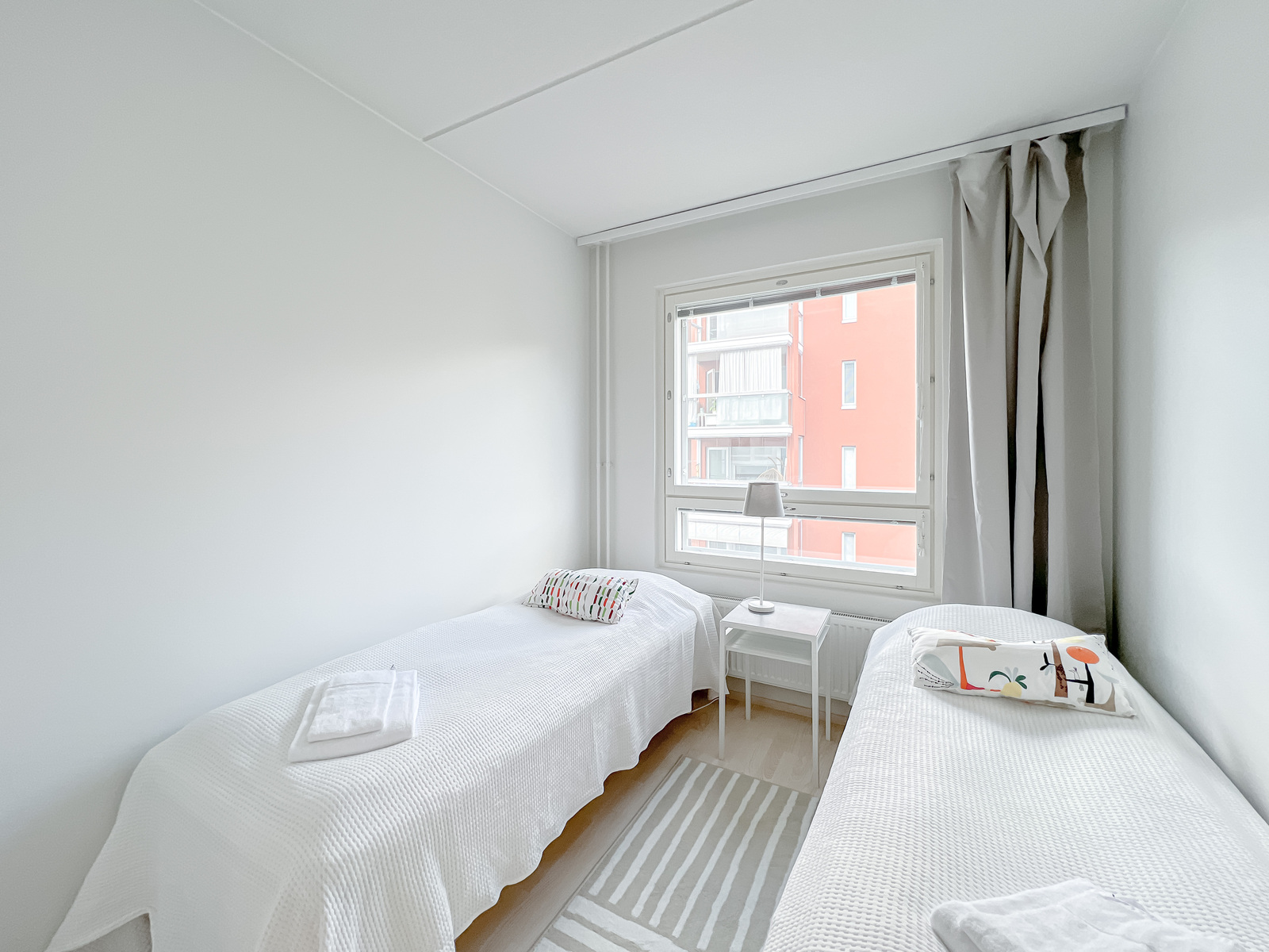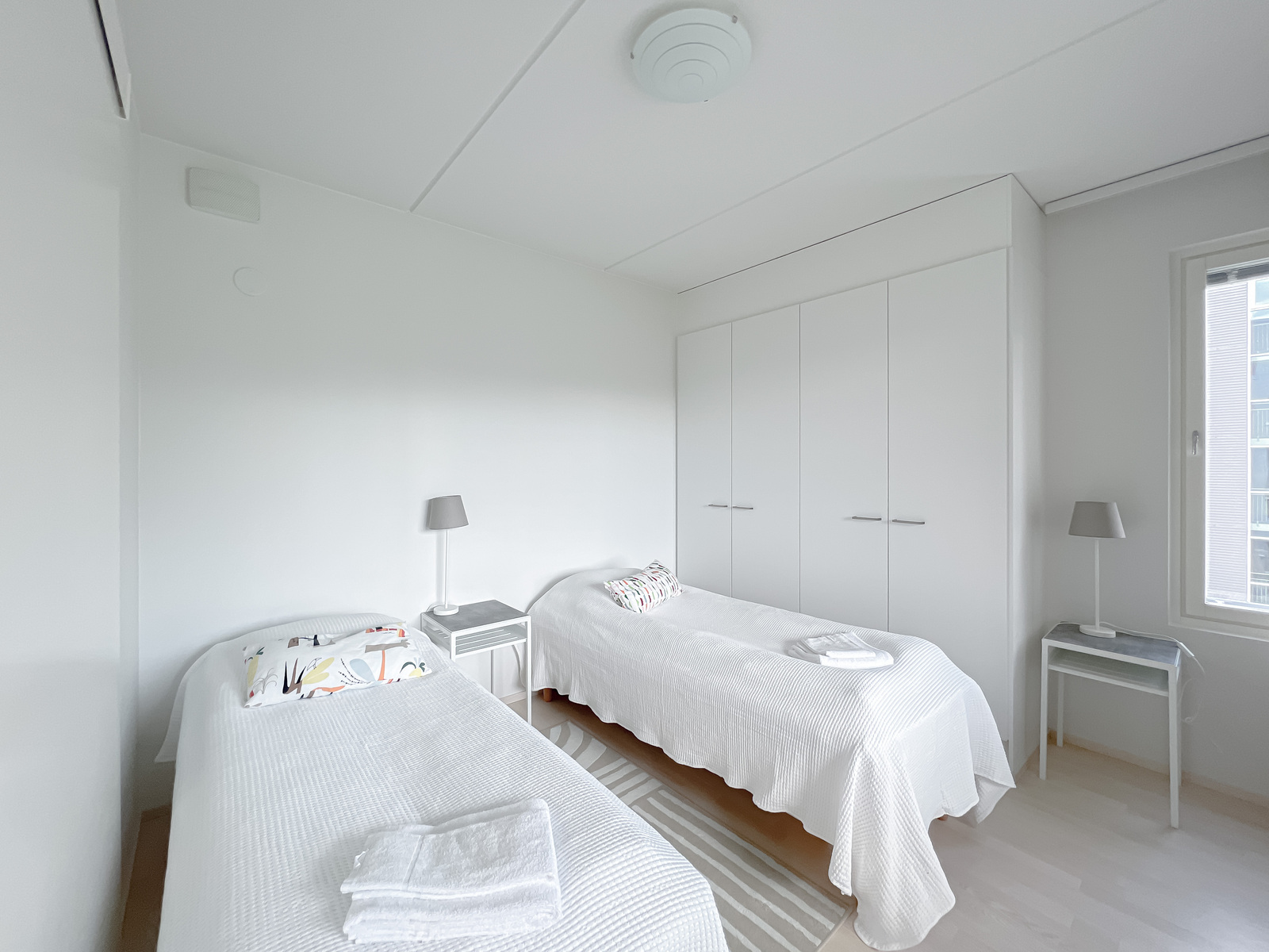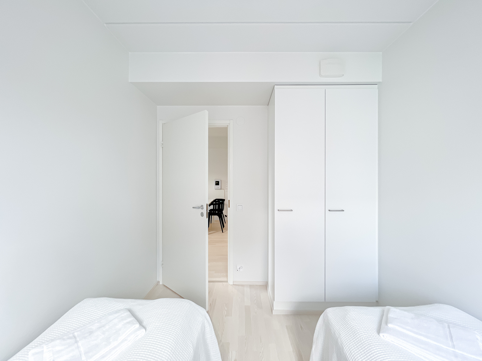Olohuone ja keittiö muodostavat avonaisen oleskelutilan yhdessä olemiseen. Modernissa avokeittiössä, joka on kuin tyylikäs sisustuselementti itsessään, on integroidut ja laadukkaat kodinkoneet. Asunnossa on kaksi mukavan kokoista makuuhuonetta, sekä lasitettu parveke vehrein näkymin.