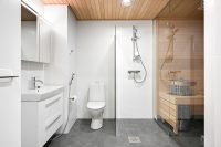| Tilojen kuvaus | Asuinhuoneissa on korkeapainelattia. Pesuhuoneen, saunan, wc- ja kodinhoitotilojen lattioissa on keraamiset laatat |