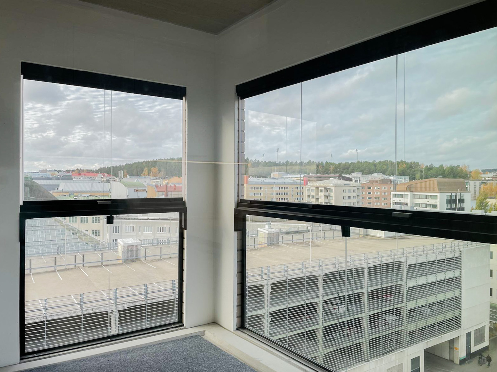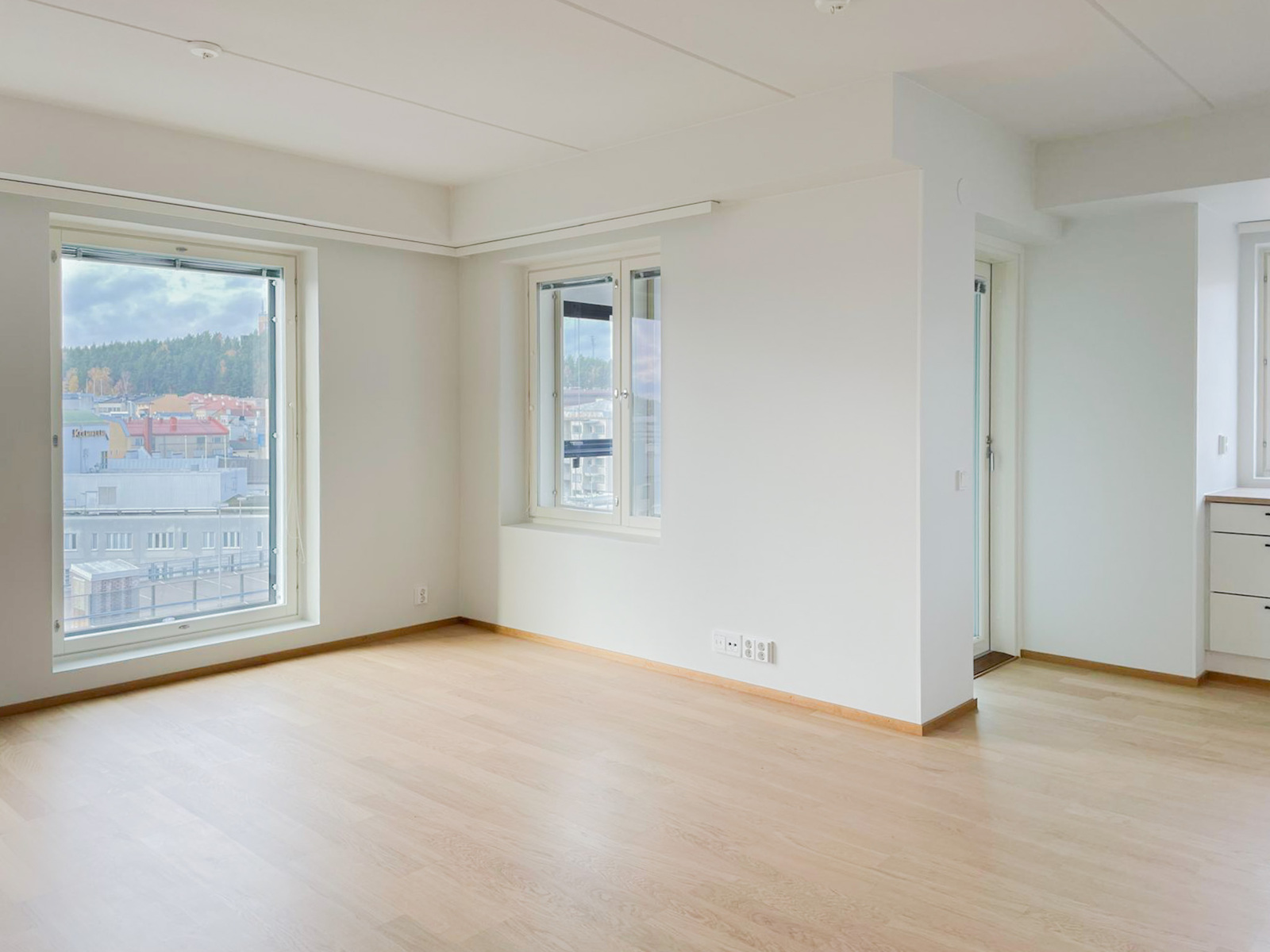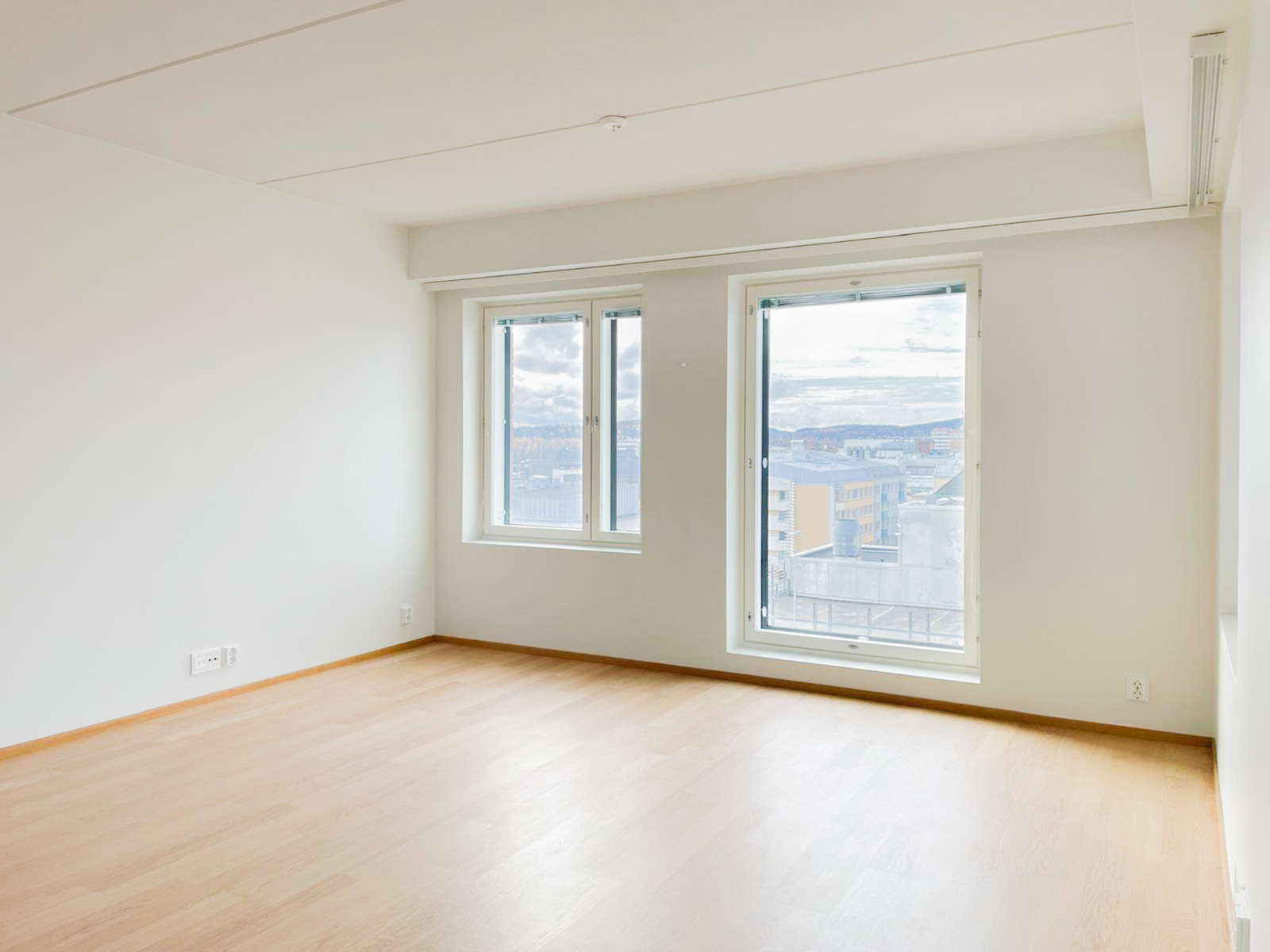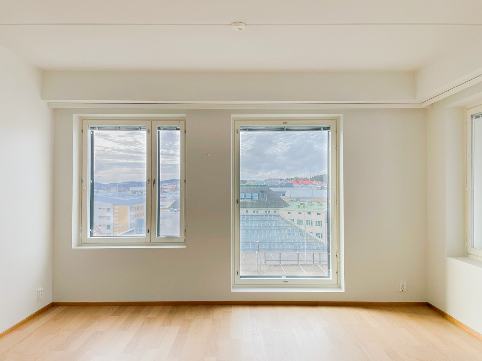 Vuokrattavissa upea yhdeksännen kerroksen kolmio. Avara tila sekä moderni keittiö. Keittiötiloista kulku tilavalle lasitetulle parvekkeelle. Asunnossa erillis-wc. Laadukkaat materiaalit ja tehokas pohjaratkaisu. Arjen ylellisyyttä tuovat lattialämmitys ja -viilennys. Taloyhtiöllä on vakiona 10M laajakaistayhteys.