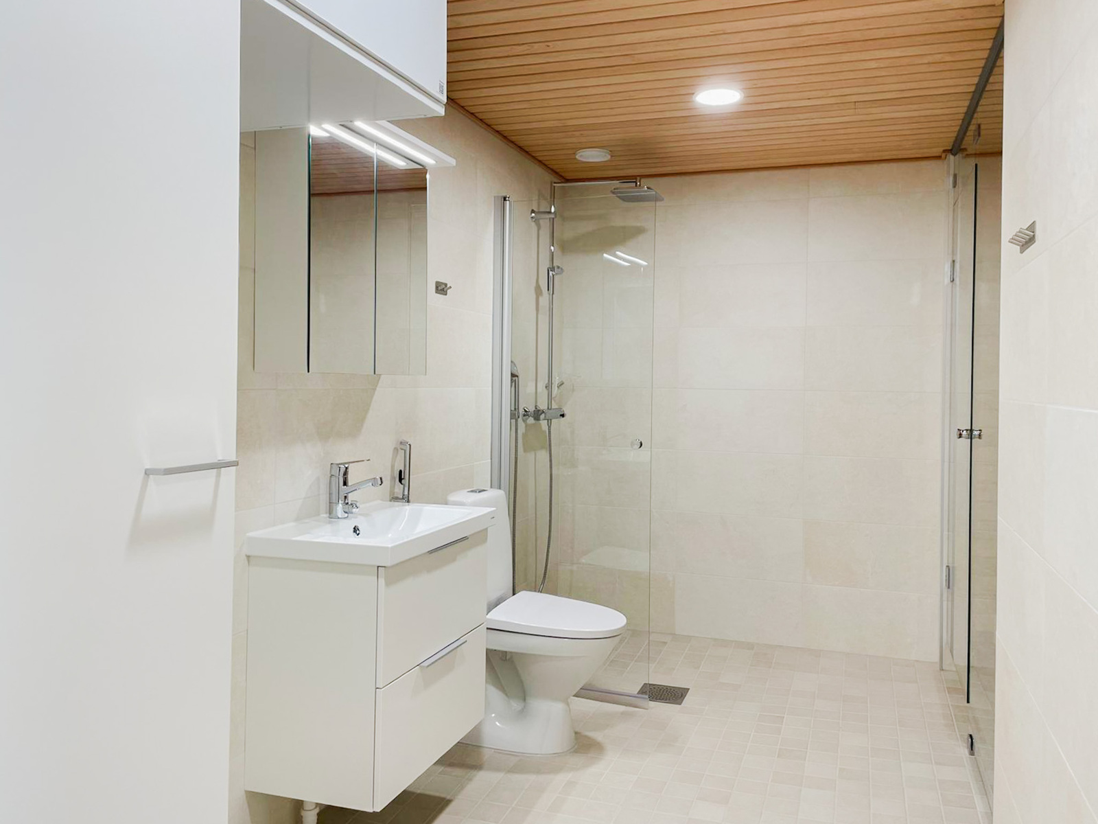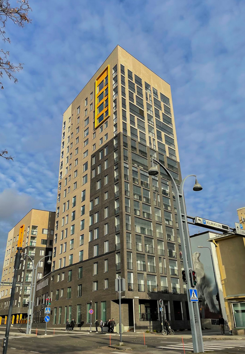| Taloyhtiössä muuta | Koneellinen tulo- ja poistoilmanvaihtojärjestelmä, lämmöntalteenotolla. Ilmanvaihto on 2.8. kerroksissa keskitetty ja kerroksissa 9.16. huoneistokohtainen. Yleiset tilat ja liiketilat toimivat omilla koneilla. Lämmityksenä kaukolämpö, lämmönluovutus asunnoissa termostattiohjatulla vesikiertoisella lattialämmityksellä, pesuhuoneissa on sähköinen mukavuuslattialämmitys. Viilennysmuotona kesäaikana toimiva lattiaviilennys. Huoneistot varustetaan sähköverkkoon liitetyillä, patterivarmistetuilla palovaroittimilla. Kiinteistö liitetään Elisan kaapeli-TV-järjestelmään ja varustetaan laajakaistan mahdollistavalla yleiskaapeloinnilla. Elisan laajakaistan nopeus on vakiona 10M. |