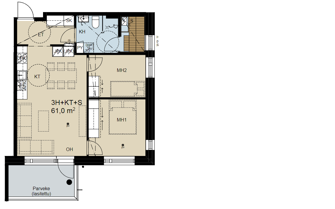 | Yhteensä m² | 61 m² |