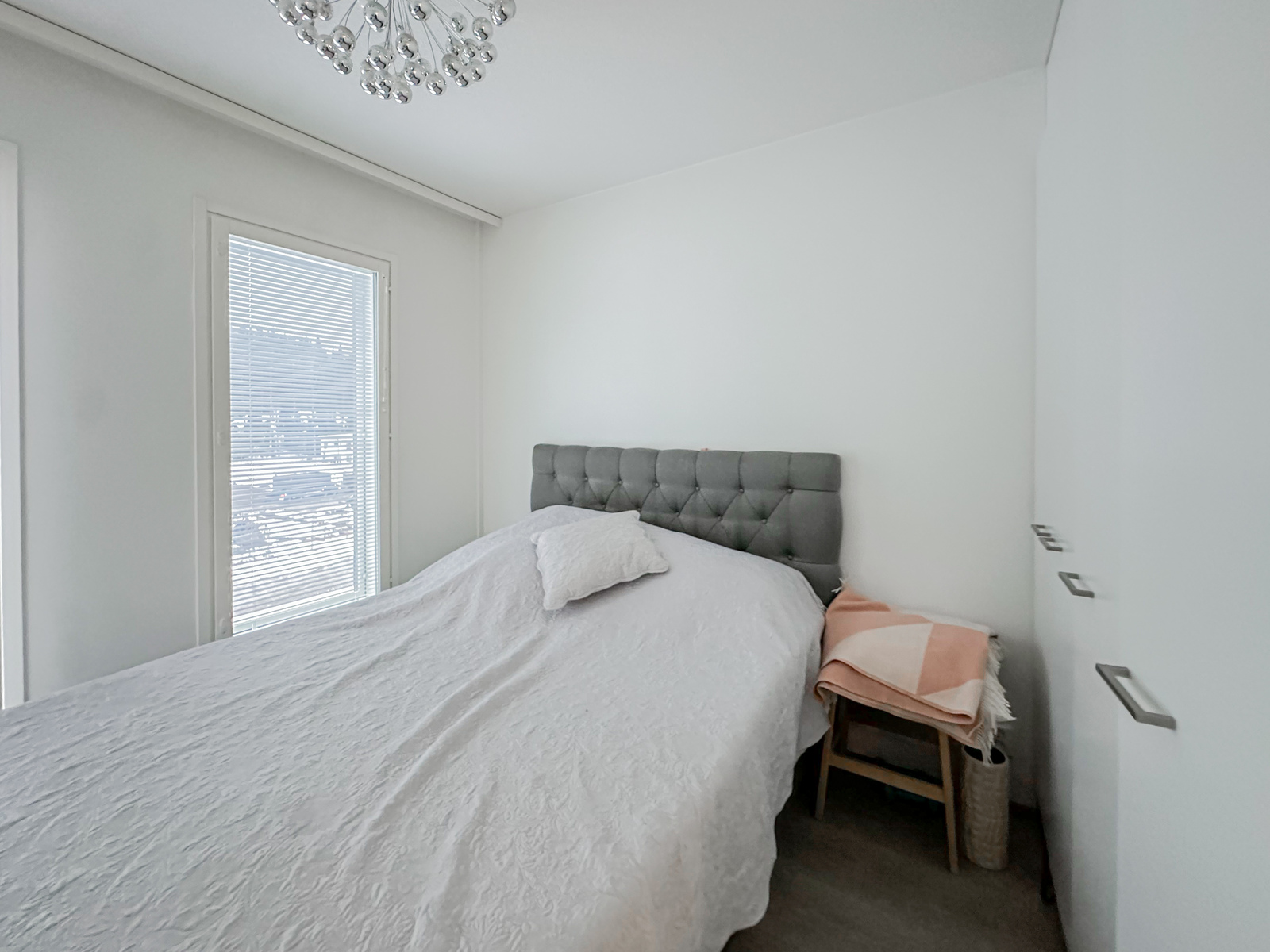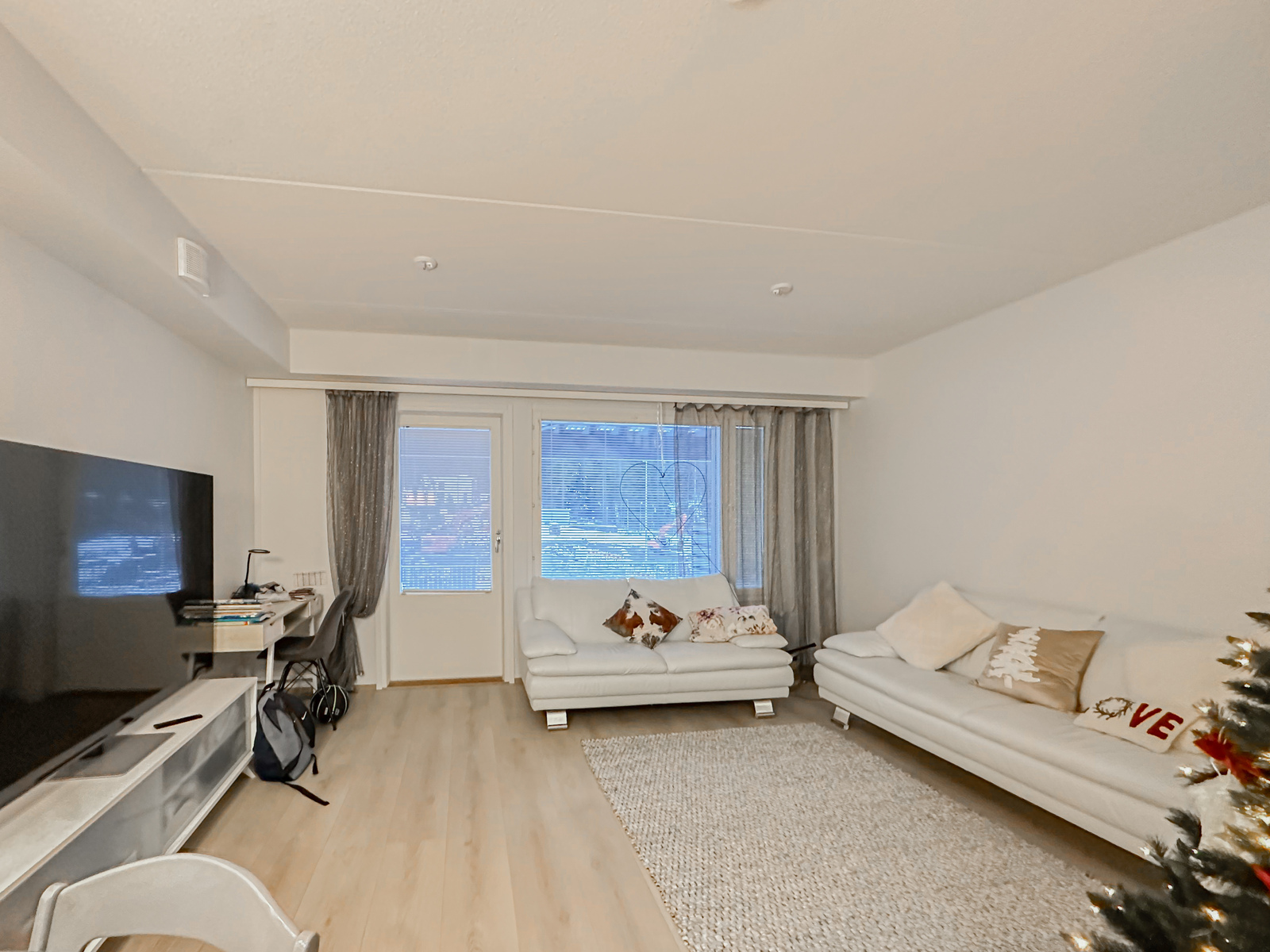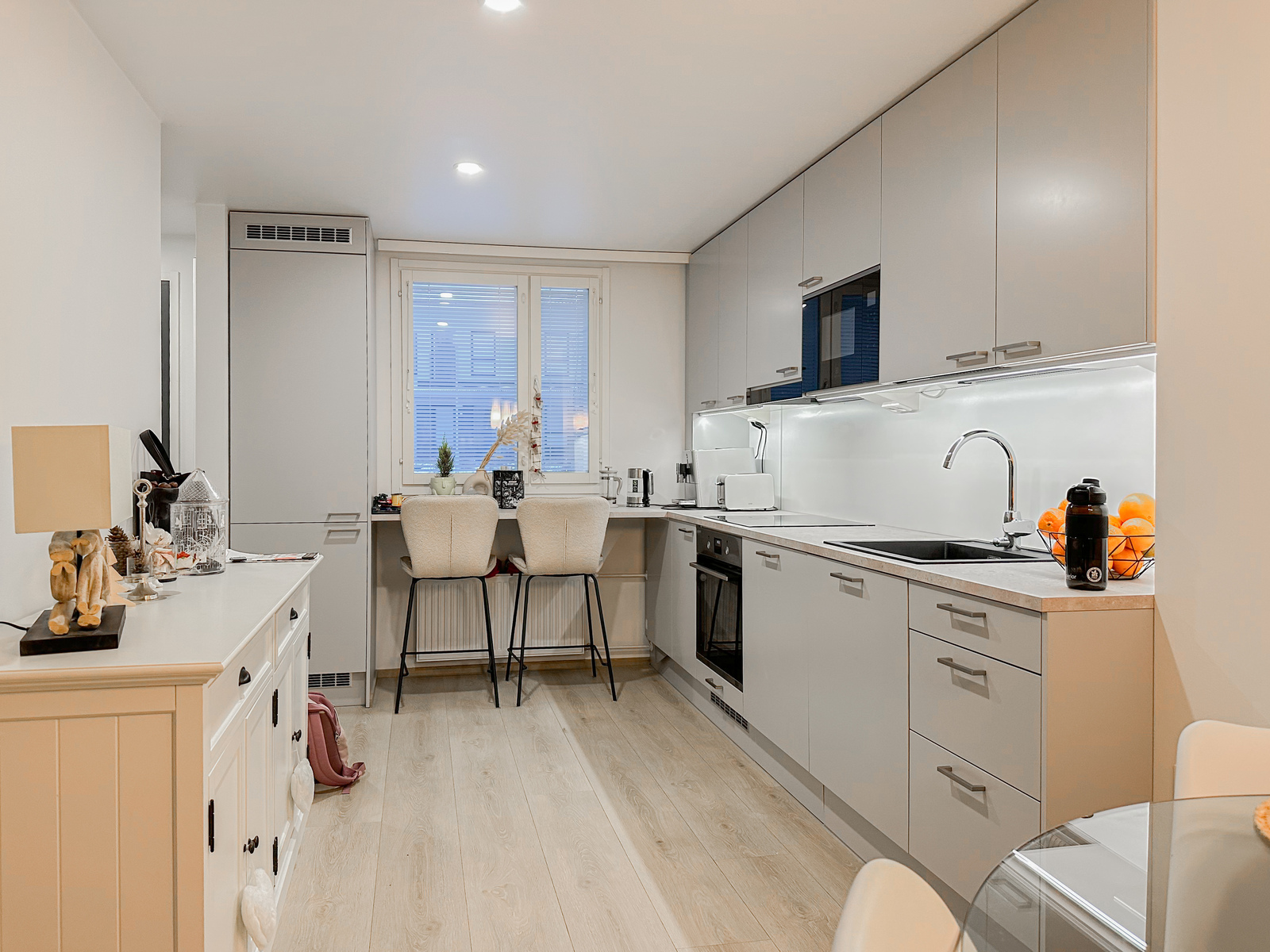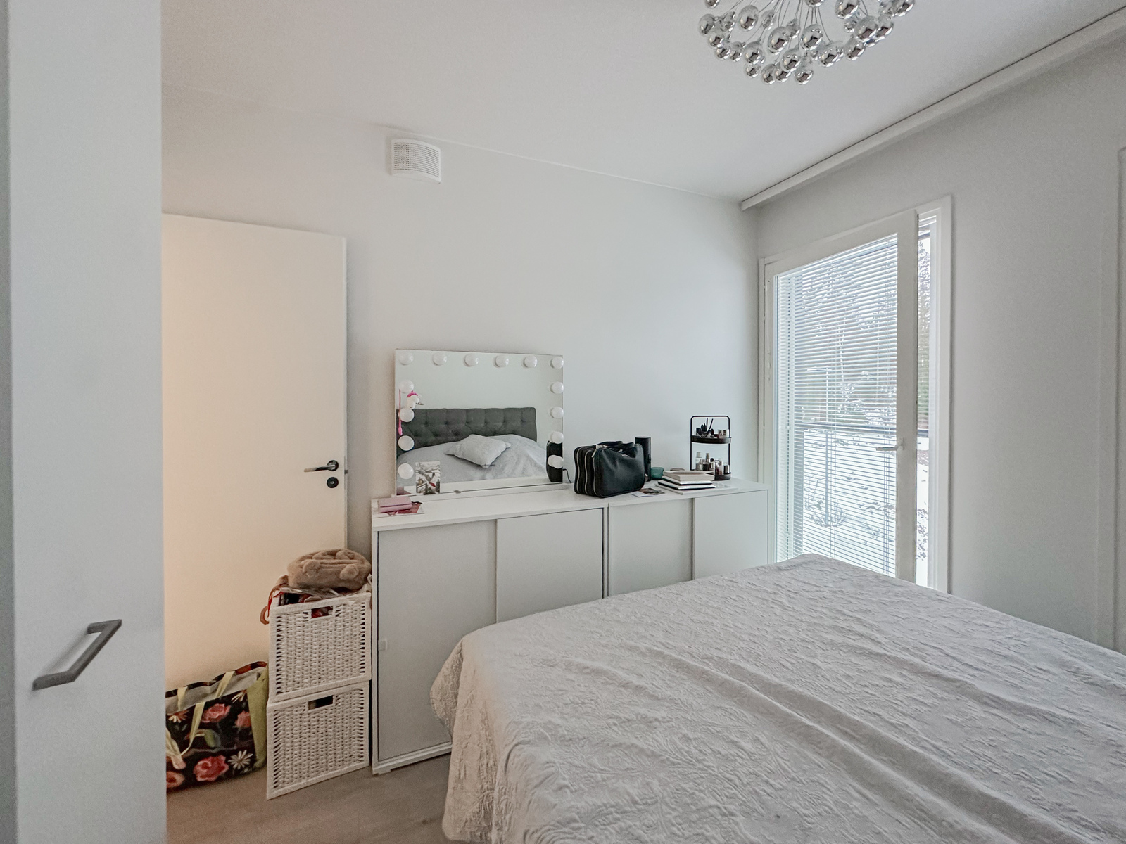 Erittäin viehättävä ja valoisa koti, jonka vaaleat pinnat ja tehokkaat neliöt tarjoavat viihtyisyyttä. Modernissa keittiössä onnistuu mainiosti arjen kokkailut. Avarat oleskelutilat avautuvat valokatetulle terassille. Päämakuuhuoneessa on ranskalainen parveke ja molempien makuuhuoneiden yhteydessä on kiinteät kaapistot. Käytännöllisyyttä arkeen tuo erillinen wc, sekä tilava kylpyhuone, jossa on mukavasti tilaa mm. pyykinhoitoa varten.